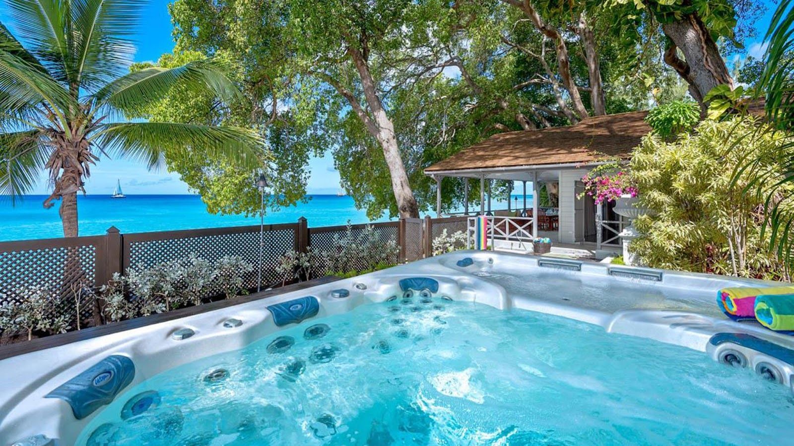 With almost an acre of mysterious and vegetation-rich grounds, a bubbling hot tub, and views of the ocean framed by swaying palm trees and charming deck space, outdoor living is stylishly executed. Sitting back with rum cocktails at the end of a busy day, slipping into the hot tub, or enjoying the sun setting over the ocean will be about as good as it gets.